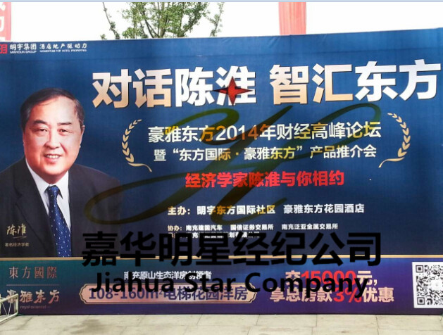 嘉華明星經(jīng)紀(jì)公司經(jīng)濟(jì)報(bào)道5月31日下午,四川南充明宇東方國際通過我司嘉華娛樂邀請其舉辦的豪雅東方2014經(jīng)濟(jì)高峰論壇,現(xiàn)場陳淮詳細(xì)解讀新政下地產(chǎn)市場未來發(fā)展的走向,答記者問環(huán)節(jié),犀利的言辭,博得現(xiàn)場觀眾的熱烈掌聲。