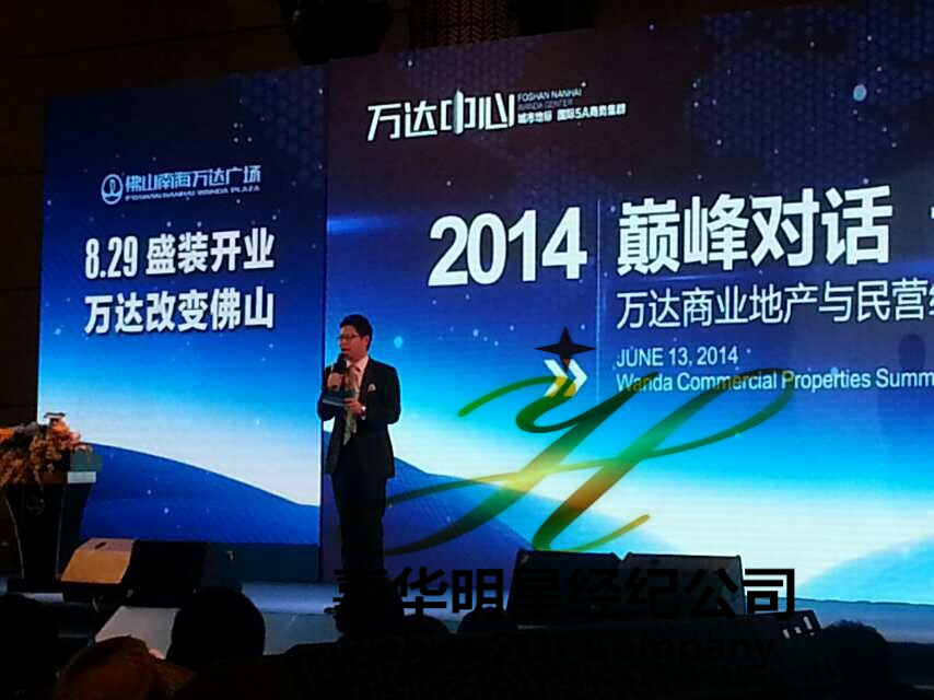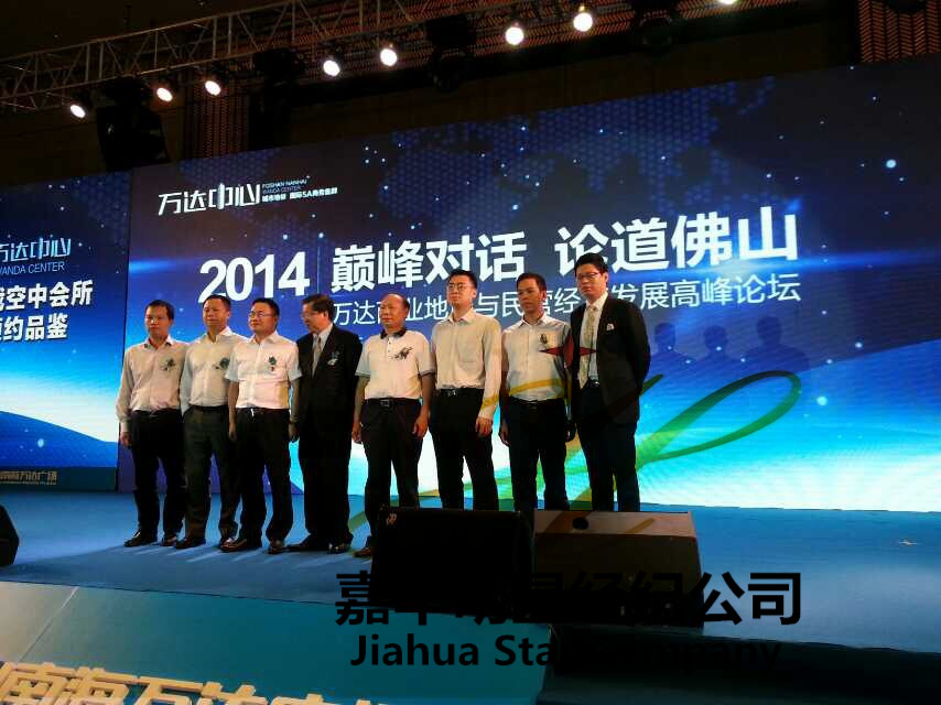 6月13日 佛山萬達投資有限公司通過嘉華明星經紀公司邀請龍永圖、馬紅漫出席2014 巔峰對話 論道佛山 之萬達商業地產與民營經濟發展高峰論壇。