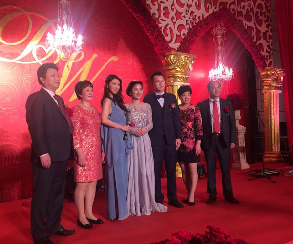 薛凱琪與新郎、新娘及雙方父母合影留戀