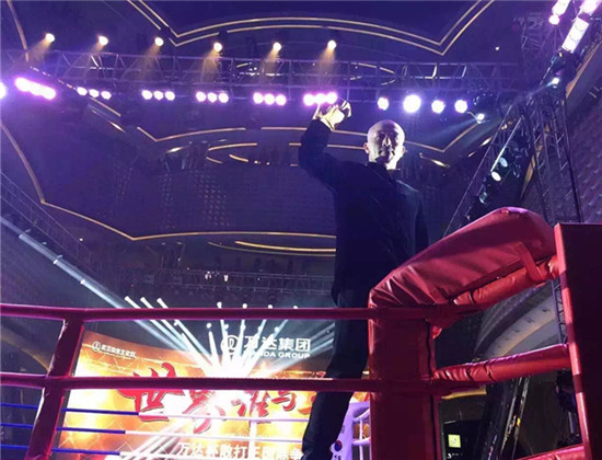 4月16日下午,嘉華明星經紀公司攜武僧一龍出席武漢萬達杯散打王國際爭霸賽。
