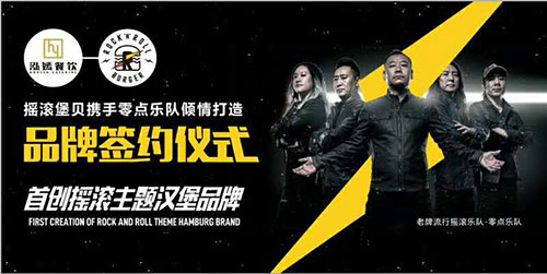 6月15日,搖滾堡貝攜手零點樂隊品牌簽約儀式,首創搖滾主題漢堡品牌。