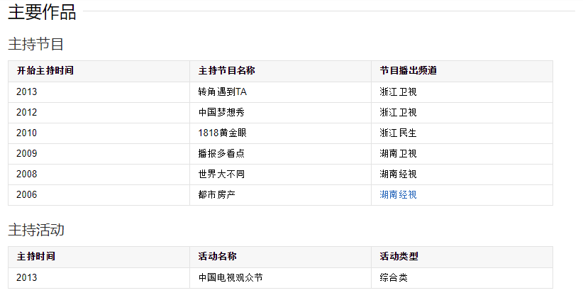 代表作品:播報多看點、中國夢想秀、轉角遇TA