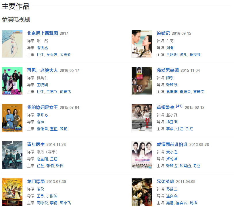 代表作品:歡天喜地七仙女、最后的格格、玫瑰江湖、孽緣、少年天子、我要成名